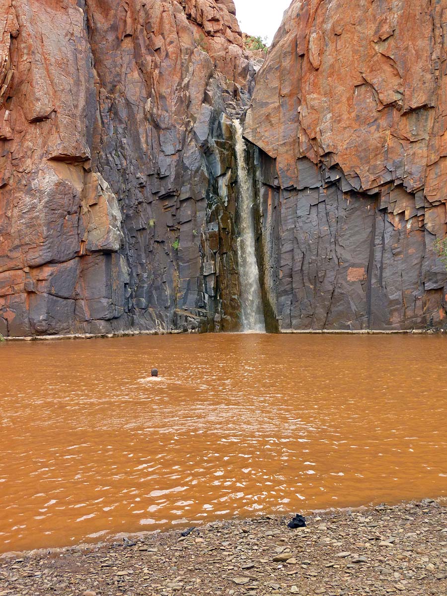 Nous nous installons pour la nuit et prenons un bain dans Python pool (encore de l'eau marron, remuée par les pluies).