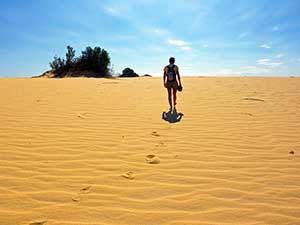 Nous passons un excellent moment sur ces dunes de sable blanc. Nous y jouons comme des gamins le feraient ! Nous avons l'impression de marcher, de courir sur de la neige.